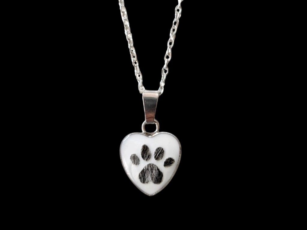 Erinnerungsschmuck - Halskette 50 cm + Herz mit Tierfell in Pfotenform Edelstahl