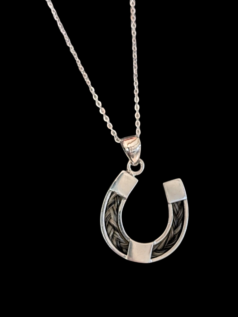 Erinnerungsschmuck - Halskette 45cm + Hufeisen mit Schweifhaar 925 Silber