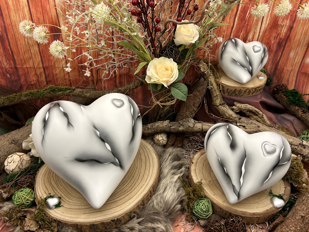 Tierurne Innenbereich - Herzform mit silberf. Dekoherz, Weiß, Anthrazit marmoriert, Volumen: ca. 0,55 Ltr.