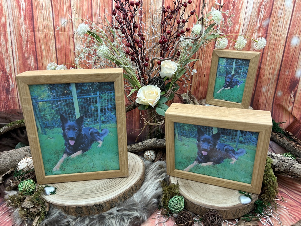 Stilvolle Holzurne als Bilderrahmenurne, Eiche.