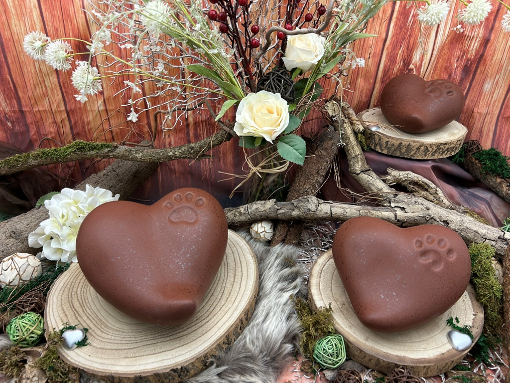 Startseite » Tierurne Außenbereich - Herzform mit Pfote, Braun, Volumen: ca. 0,45 Ltr.