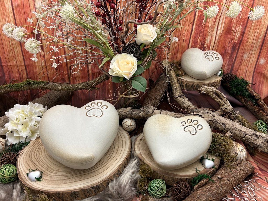 Tierurnen für den Außenbereich - Herzen mit Pfote, Creme - Gruppenbild (G1-G4)