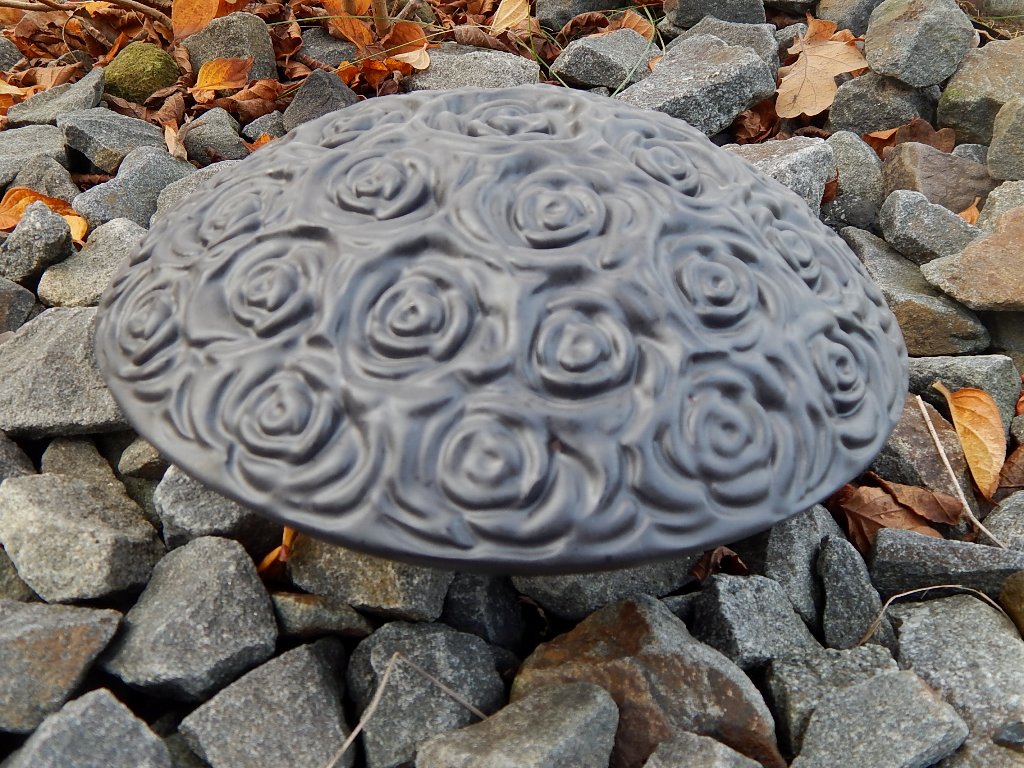 Tierurne Außenbereich - Diskusform mit Rosenblüten, Grau-Schwarz, Volumen: ca. 1,50 Ltr. (Auslaufmodell)