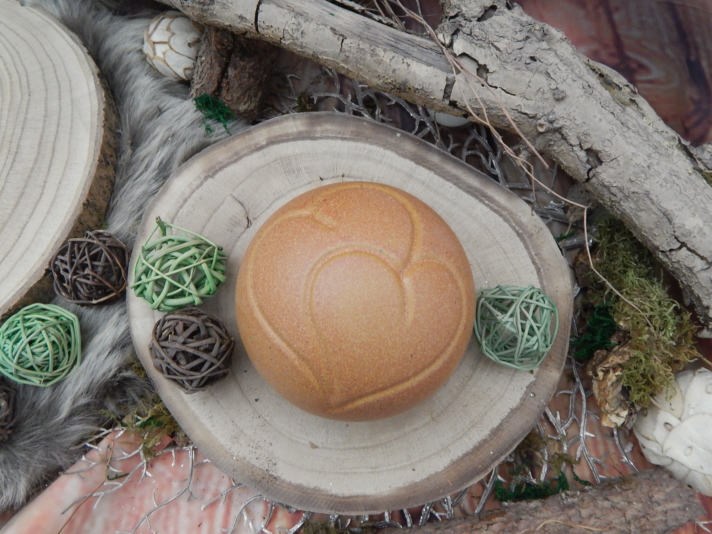 Kugelurne mit Doppelherz in Sand in ca. 0,45 Ltr. (auf Gruppenbild: vorne rechts) - Aufgrund des hohen Brandes sind Farbabweichungen möglich!